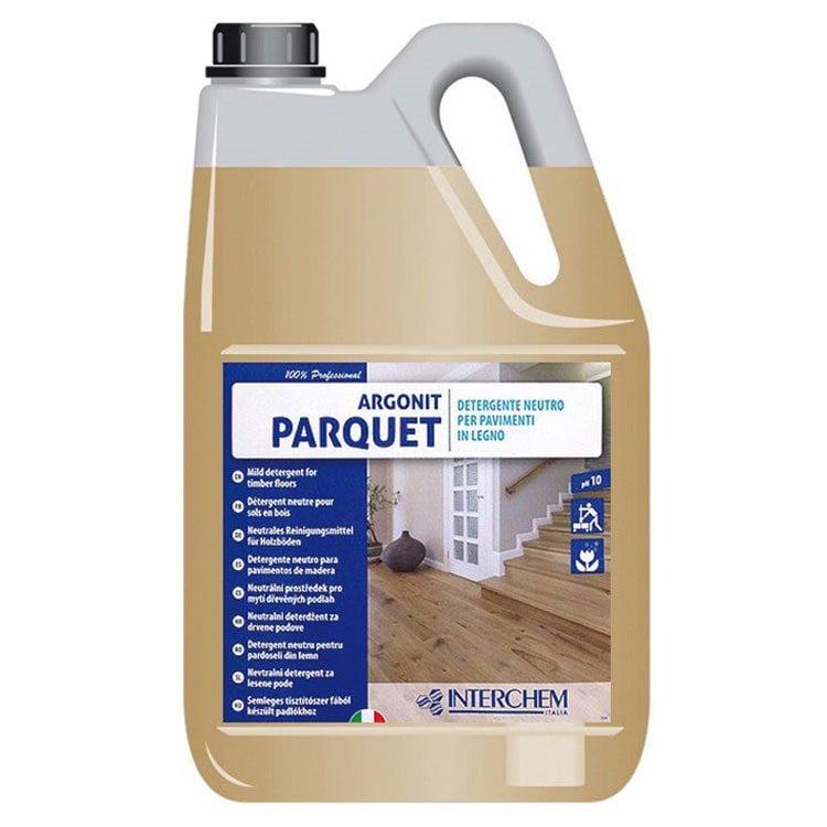 Detersivo per pavimenti in legno neutro ARGONIT PARQUET, a base di saponi naturali e lanolina. Deterge e allo stesso tempo nutre le superfici trattate, ravvivando il legno e lasciando una gradevole profumazione. Detergente per legno utilizzabile con mop o frangia ben strizzati. Non necessita di risciacquo. PH10.