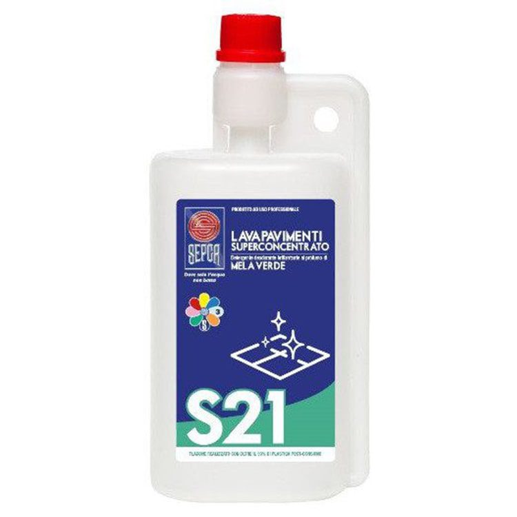 Lavapavimenti S21 superconcentrato detergente deodorante e brillantante. Adatto a tutte le tipologie di superfici lavabili, questo prodotto professionale garantisce pulito eccellente e costi contenuti.